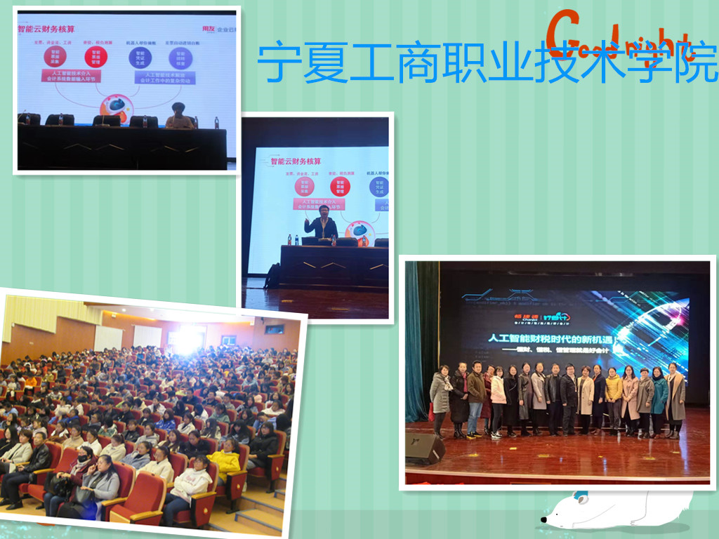 2019年11月,由北京用友暢捷通公司和銀川會(huì)計(jì)培訓(xùn)中心發(fā)起的,寧夏工商技術(shù)職業(yè)學(xué)院財(cái)會(huì)金融學(xué)院、銀川能源學(xué)院商學(xué)院校園人工智能巡講順利舉辦,本次巡講邀請(qǐng)了來(lái)自北京用友暢捷通公司的余濤老師,就人工智能財(cái)稅時(shí)代的新機(jī)遇及會(huì)計(jì)未來(lái)發(fā)展方向以及如何面對(duì)人工智能財(cái)稅新時(shí)代,與寧夏工商職業(yè)技術(shù)學(xué)院和銀川能源學(xué)院商學(xué)院師生進(jìn)行交流。