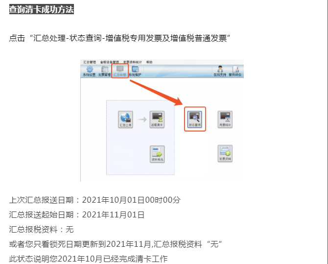 此狀態(tài)說明您2021年10月已經完成清卡工作